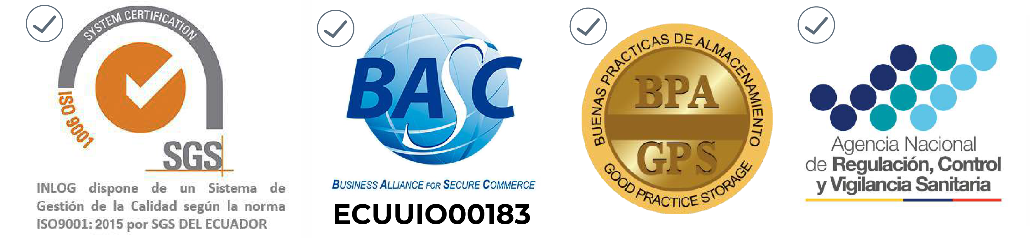 Operamos en logística con INLOG que se especializa en el sector farmacéutico y cuenta con certificación ISO 9001, BPA por parte de la Agencia Nacional de Regulación, Control y Vigilancia Sanitaria (ARCSA), BASC ECUUIO00183